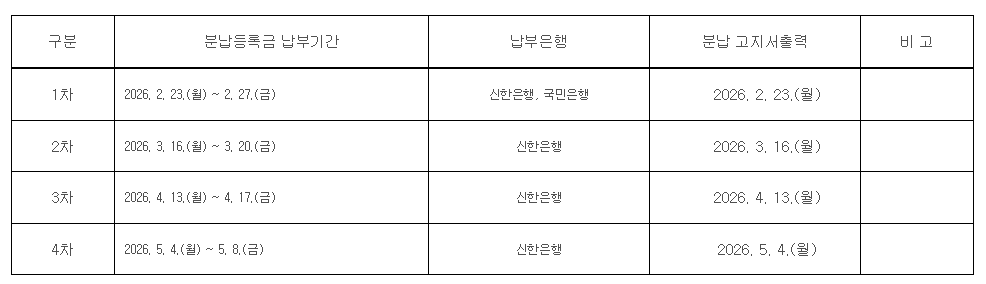 • 분납 4회 선택 시: 1차 50%, 2차 20%, 3차 20%, 4차 10%